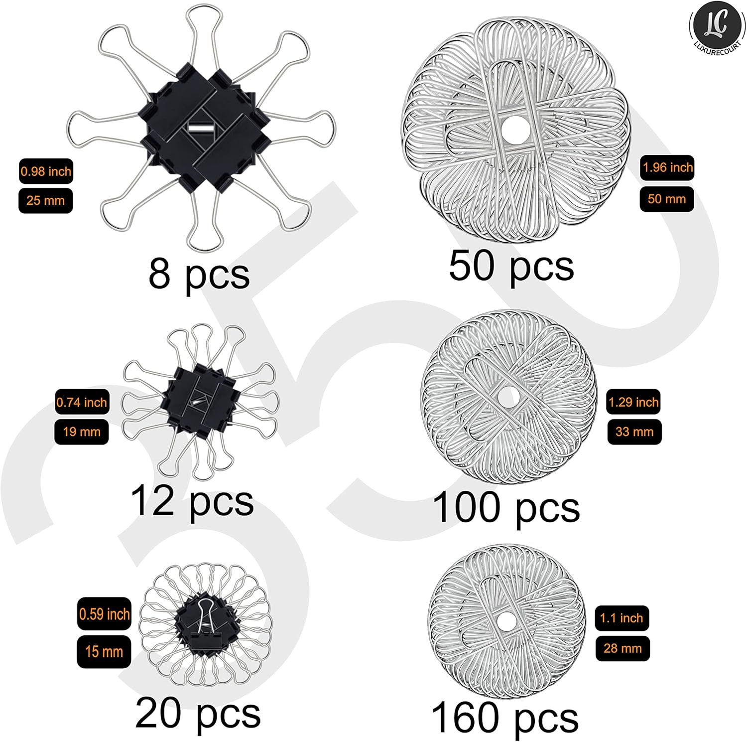 Assorted Sizes for All Your Needs – Each pack contains 160, 100, and 50 pieces of assorted paper clips (28mm, 33mm, 50mm). Get 20, 12, and 8 pieces of the paper binder clips (15mm, 19mm, 25mm), too!