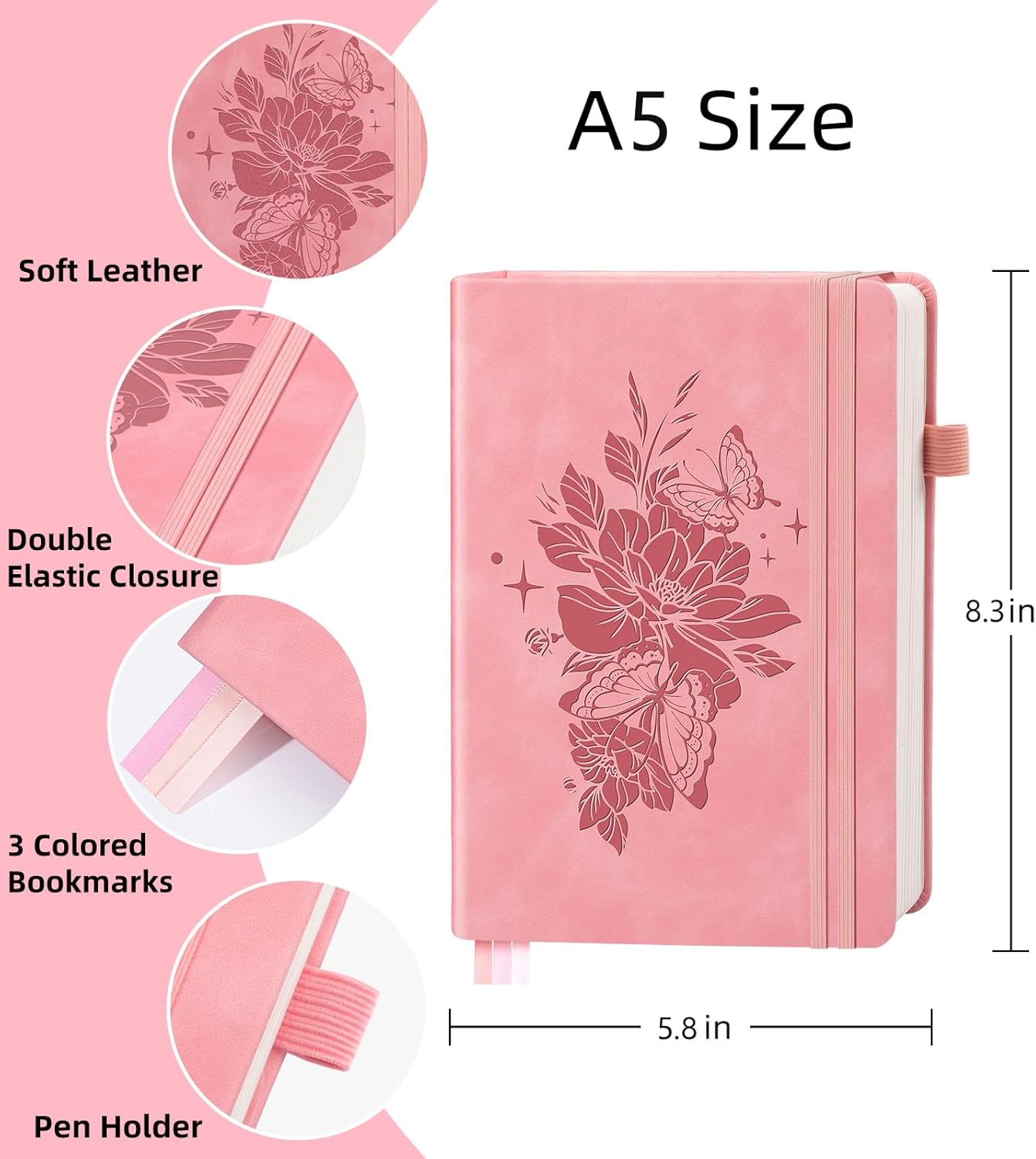 【Hardcover Leather&Elegant Design】This lined notebook features a high-quality faux leather cover. The gorgeous “FLOWER” pattern provides a premium look and comfortable feel; The hardcover better protects the pages, combined with sturdy binding, giving you a high-quality writing experience.