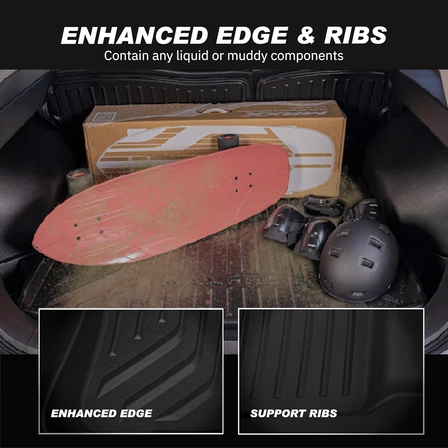 Maximum Protection in All Weather Conditions – Whether it’s mud, snow, rain, or spills, our odorless TPX cargo mat offers complete trunk protection with raised edges and anti-slip texture to prevent cargo movement.