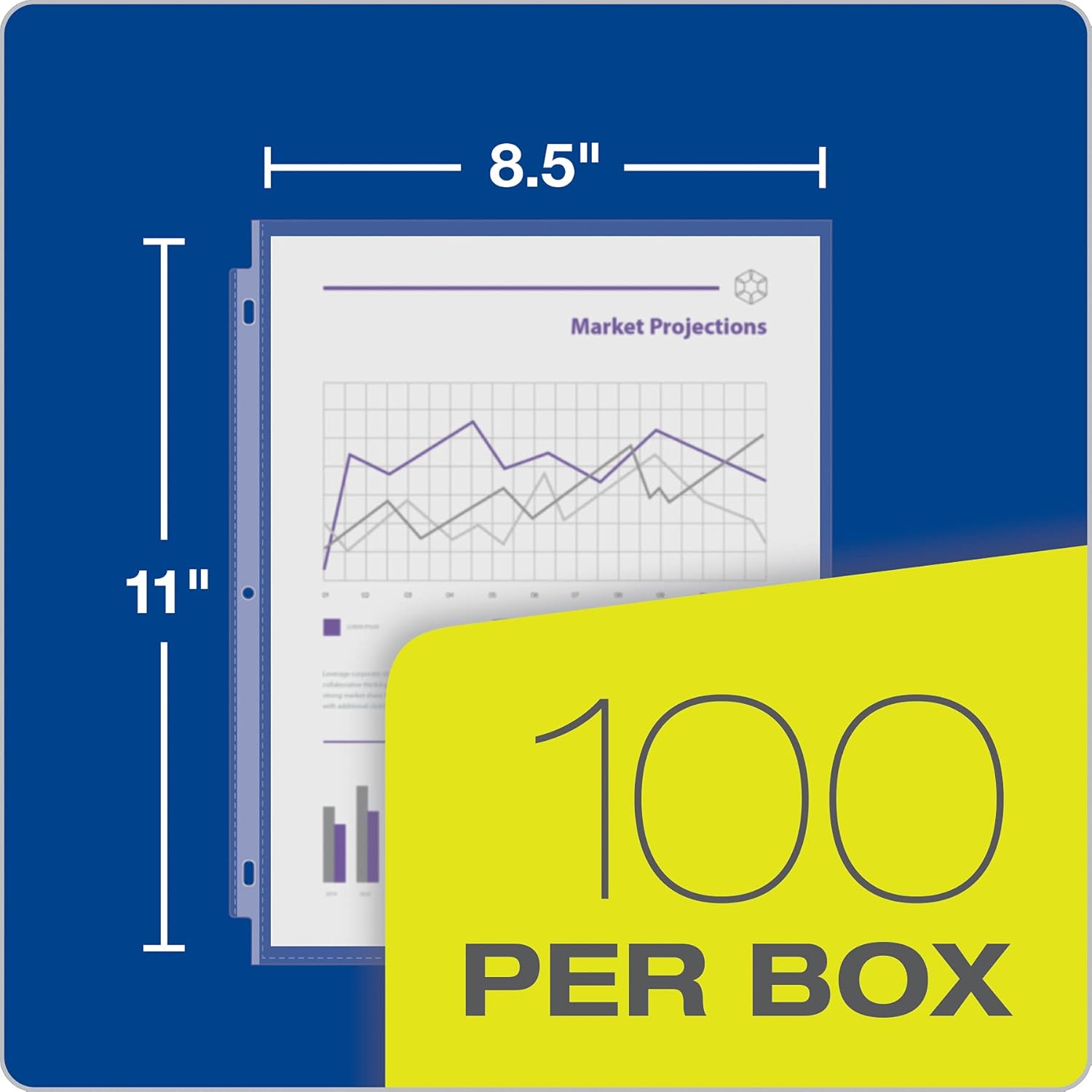These Oxford Lightweight Sheet Protectors are 2 mils/.05 mm thick for sheer, feather-light protection that’s wear & tear resistant. Durable non-stick and archival safe polypropylene sheet protectors won’t transfer ink and colors from your pages. A crystal clear finish provides excellent clarity. Built with top loading sleeves to make pages easy to insert. Long lasting poly document protection helps you store and organize recipes, academic papers, financial reports, vital records and other indispensable papers. A stock-up essential for classroom, homeschool, workplace or home office binders. Reinforced 3 hole punch for durability. Letter size to fit 8 1/2 x 11 inch paper. Clear finish. 100 Per box.