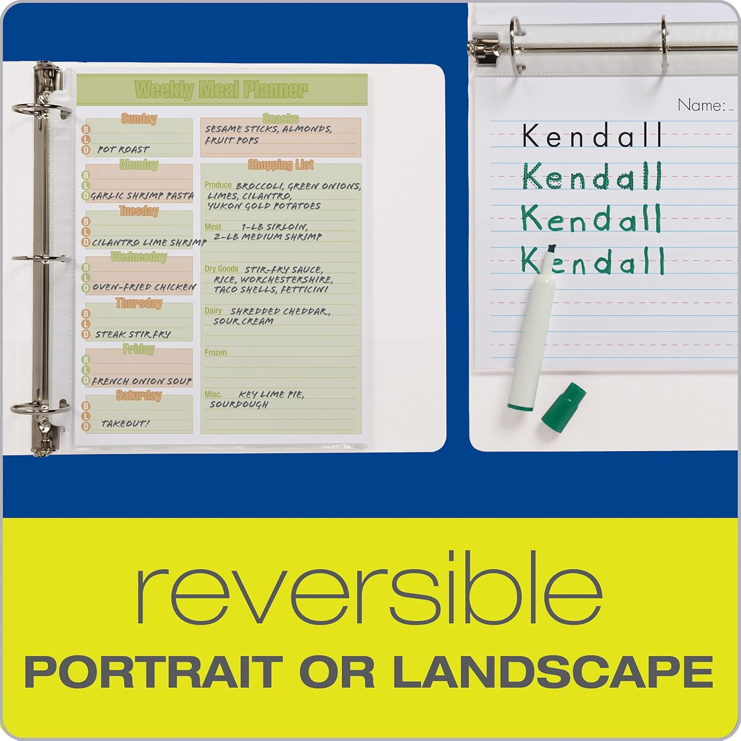 Protect and store homework, office reports, recipes, manuals, sewing patterns; awards & vital records; also makes inexpensive & reusable dry erase pockets