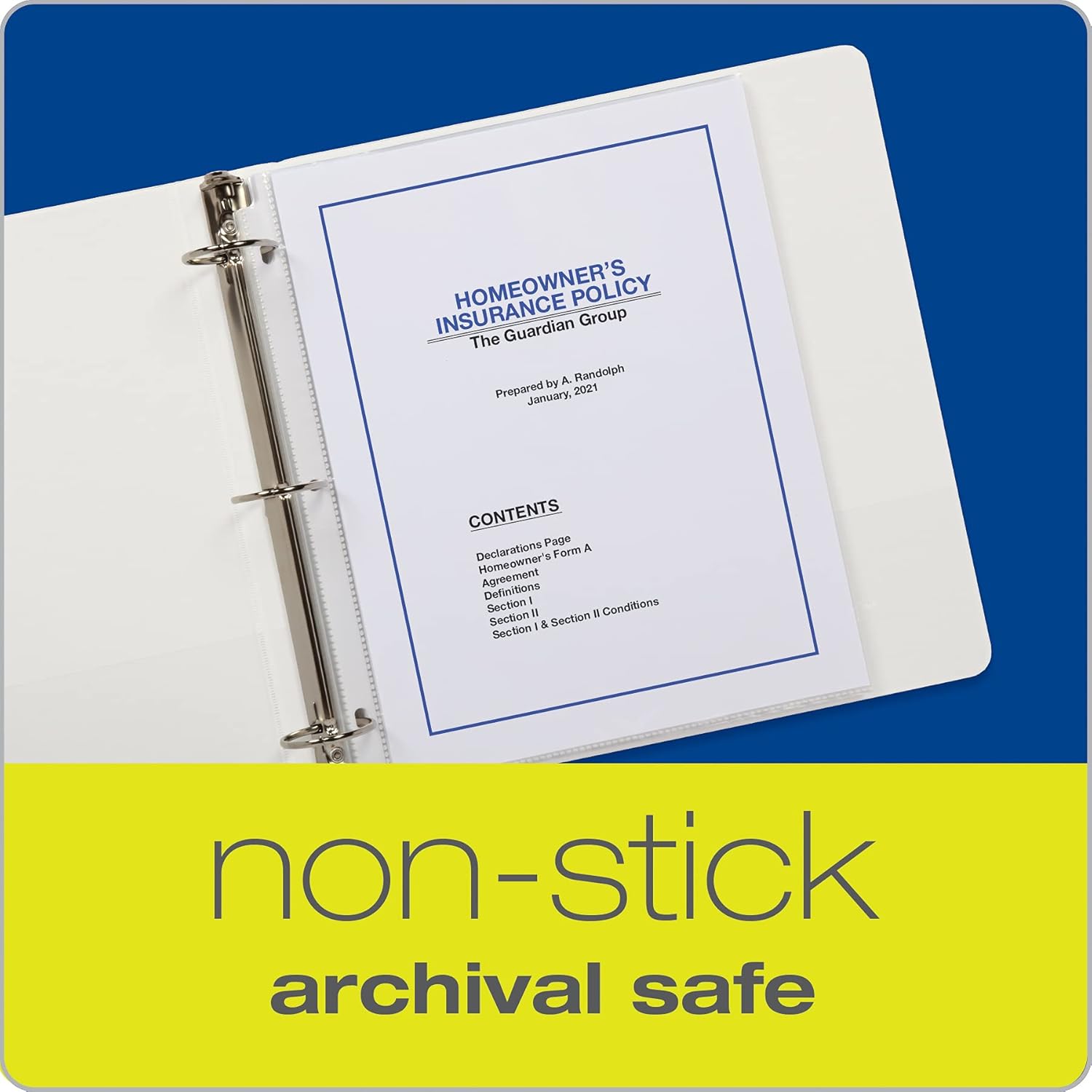 Non-stick, archival-safe polypropylene material is durable and has a crystal clear finish that’s easy to read through; top loading sheets make placing paper a snap