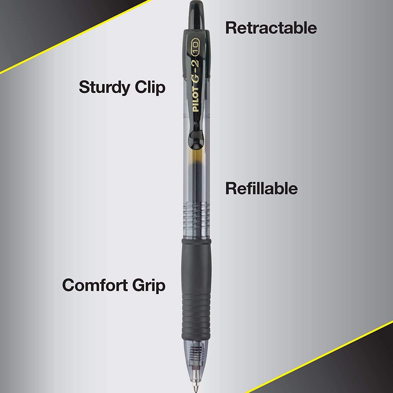 DISCOVER G2: THE PEN CHOICE OF OVERACHIEVERS. G2 Pilot pens are the ultimate pens for everyday overachiever. The Pilot G2 writes smoothly, comfortably and includes 4 point sizes, 27 color options, and multiple barrel styles to suit every personality and situation-including a pen + stylus option. So pick your perfect G2 because after all – pens aren’t one size fits all. It’s clear why G2 is America’s Go-2 gel ink pen. Whether you are at school, in the office, at home or creating pen & ink masterpieces, Pilot G2 Retractable Premium Gel Pens are extra comfortable and flow smoothly and evenly in bright and vibrant colors. Do you G2?A PEN THAT WORKS AS HARD AS YOU At work, home, or anywhere, you need a pen that keeps working even longer than you do. From taking notes to writing your novel by hand, G2s keep the ink and your ideas flowing. For the task at hand, G2 should be your Go-2.A G2 THAT’S RIGHT FOR YOU Are you Fine, Extra Fine, Bold, or Ultra Fine? Do you crave extreme precision or prefer bold, dark, flowing lines? Whatever your preference, with 4 point sizes, we have a G2 that’s right for you! LONG-LASTING COMFORT FOR ALL-DAY USE Pilot G2 Retractable Premium Gel Pens are equipped with an extra comfortable grip that will keep your hands from aching during those long days. Write more, do more, achieve more with Pilot’s G2 Gel Ink Pen.
