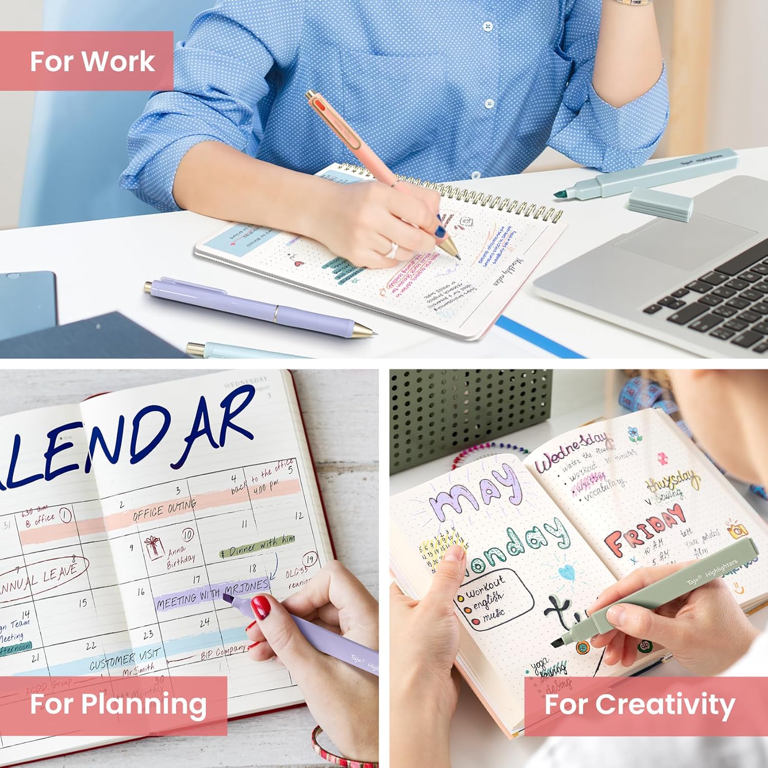 12-Piece Writing Essentials – Includes 6 pastel chisel tip highlighters and 6 smooth black gel pens in one convenient set. Perfect for Bible study, journaling, planning, note-taking, and daily writing at school or the office.