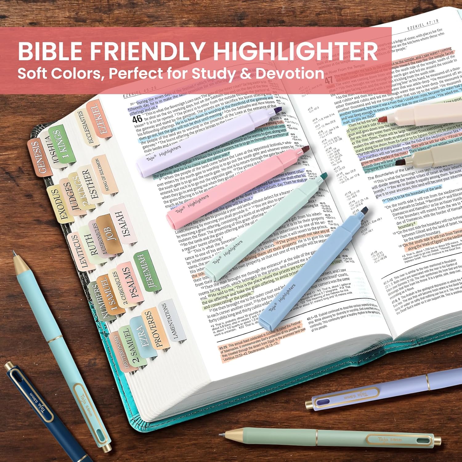 Bible-Friendly Pastel Highlighters – Soft, non-bleed colors glide gently across delicate Bible pages without obscuring text or bleeding through. Ideal for long reading sessions, prayer journaling, or highlighting scripture with clarity and peace of mind.