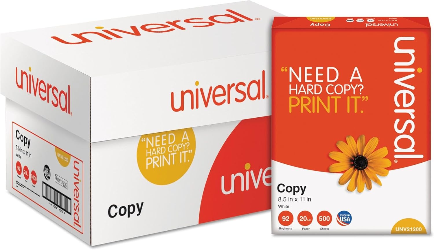 Universal copy paper is the economical choice for all your business printing and copying needs. Versatile white paper that’s reliable for everyday copying, high-speed volume applications, in-house reports, duplicating documents, and internal correspondence. Compatible with all office equipment, including copiers, laser printers, and fax machines. Laser and desktop inkjet guaranteed on cut-size cartons. Archival quality and acid-free. 92 bright white, 20 lb. paper.