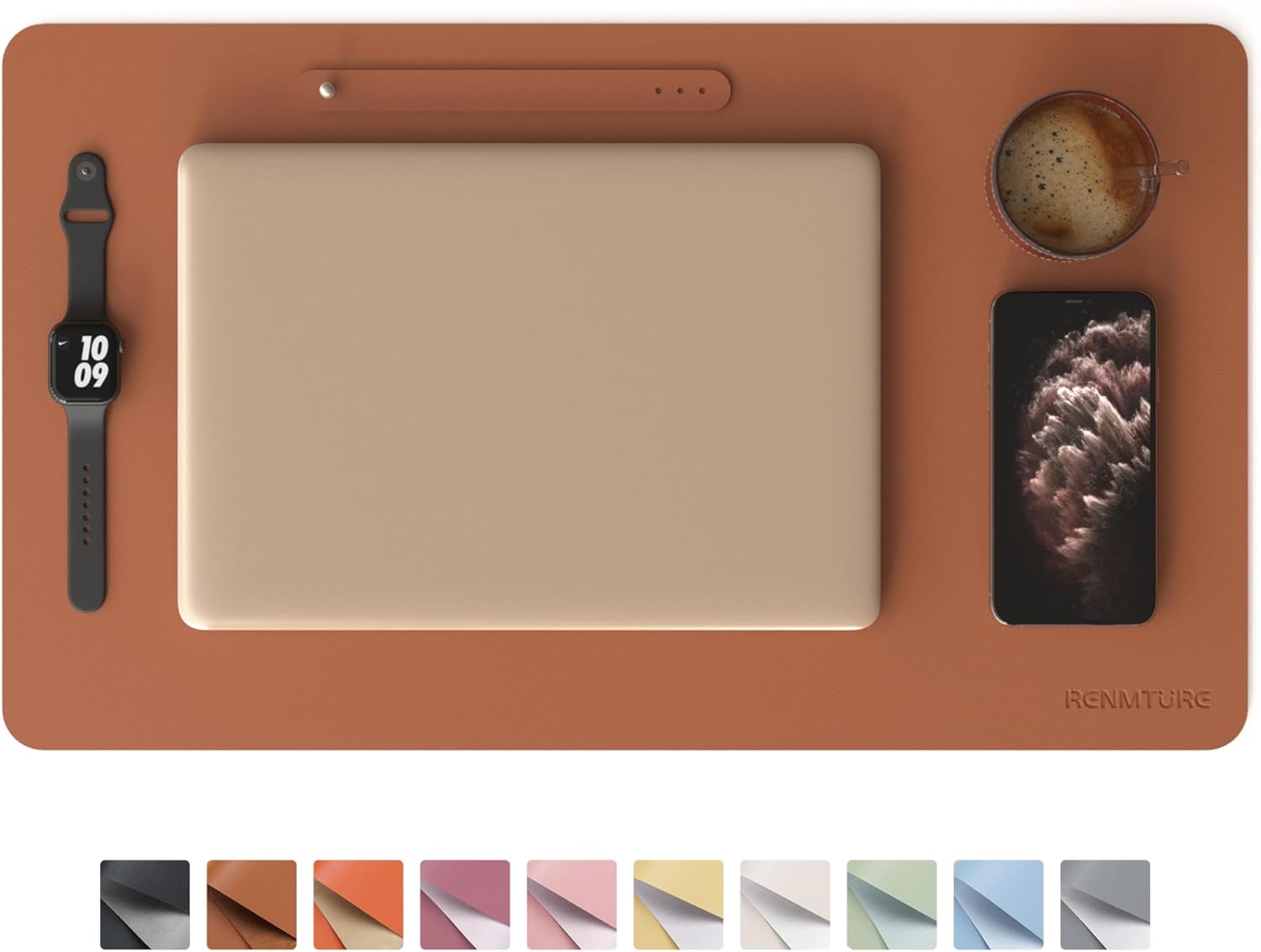 RENMTURE Dual-Sided Large Desk Pad, Faux Leather Natural Cork Mouse pad, Desk Accessories Protector, for Office and Home Work (Space Grey, 36″x17″)