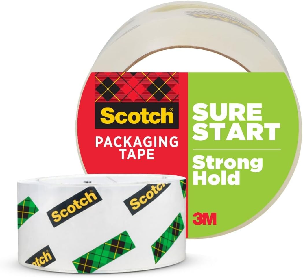 Scotch Sure Start Shipping Packaging Tape, 1.88″ x 54.6 yd, Designed for Packing, Shipping and Mailing, Quiet Unwind, No Splitting or Tearing, 3″ Core, Clear, 1 Roll (345)